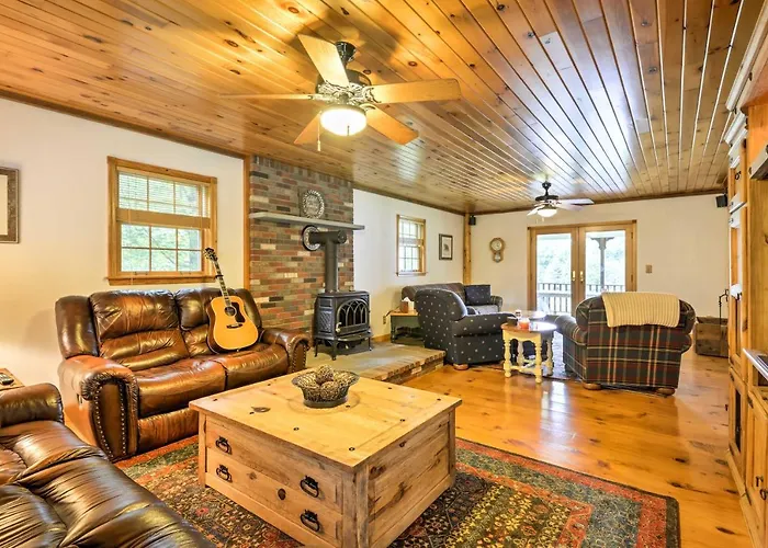 The Thompson Home With Deck And Pond is an idyllic escape situated just 75 km from Greater Binghamton. Nestled in the serene surroundings of nature, this charming abode offers the perfect blend of rustic elegance and modern comfort, making it a sanctuary for outdoor enthusiasts and relaxation seekers alike.